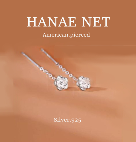 耳元にフラワーモチーフの人気のアメリカンピアスです。