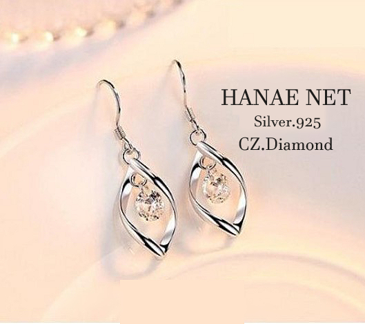 ピアス レディース CZダイヤモンド SILVER アレルギー対応 揺れる 20代 30代 40代 50代 60代 フックピアス 両耳用2個セット