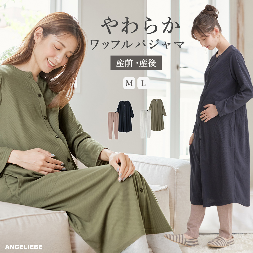 マタニティパジャマ セット ワッフル ワンピ 天竺 レギンス 2WAY パジャマ 授乳服 妊婦服 長袖 産院着 入院着 秋 冬 エンジェリーベ