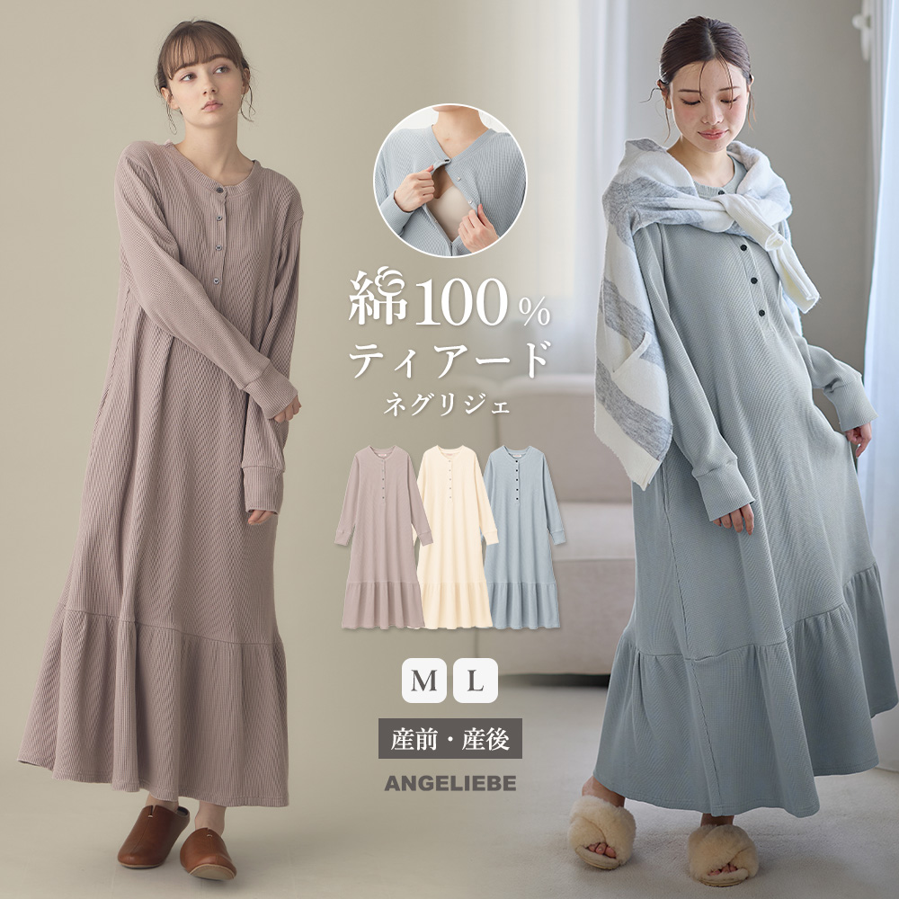 マタニティパジャマ ワンピース 授乳服 妊婦服 長袖 産前産後 ネグリジェ サーマル ティアード リラックス エンジェリーベ