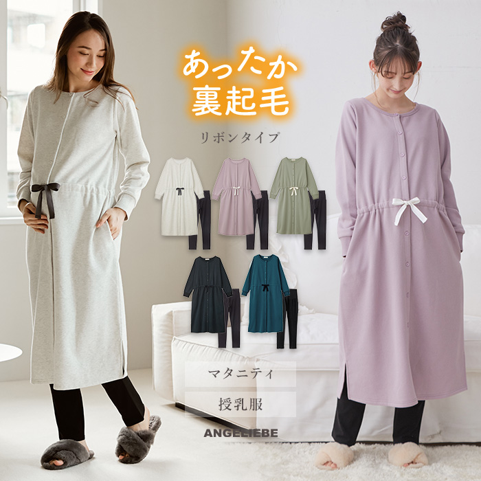 【出産後も長く使える】裏毛裏起毛ウエスト切替ワンピース&産後も使えるレギンスパジャマ マタニティ・授乳パジャマ