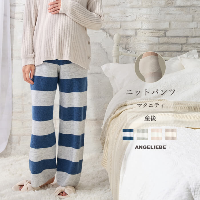 マタニティ パジャマ ニットパンツ ルームパンツ 産前 産後 ニット 防寒 あったか 妊婦服 冬 マタニティウェア エンジェリーベ