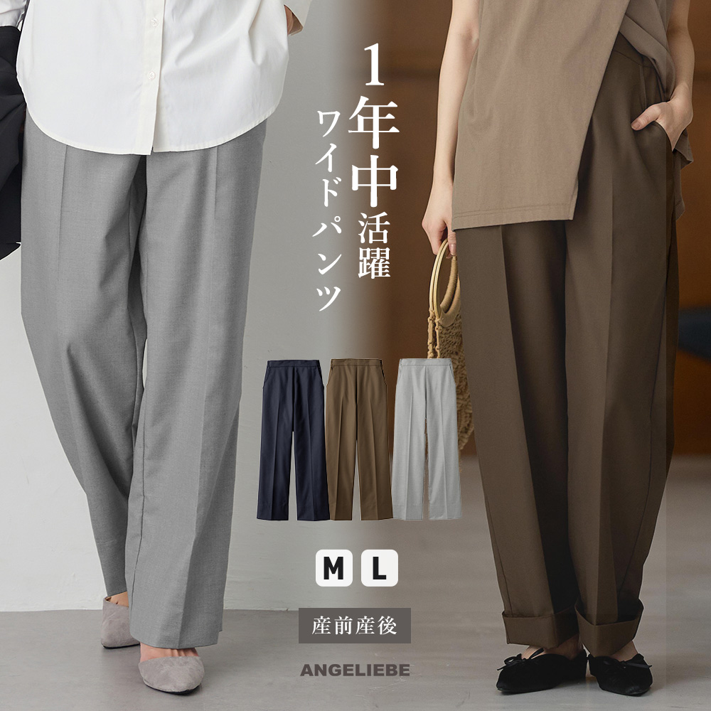 マタニティ パンツ ワイドパンツ ハイウェスト アジャスト ワイドパンツ レディース 通勤 オフィス 仕事服 産前 産後 ゆったり M L