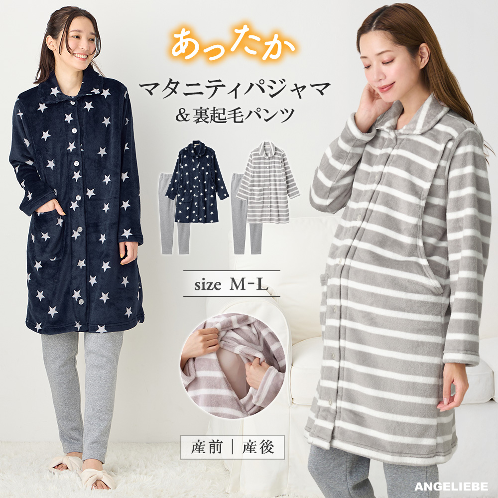 ふんわりあたたかサイドスリットトップス+裏起毛パンツ fairy(フェアリー) マタニティ・産後 【出産後も長く使える】