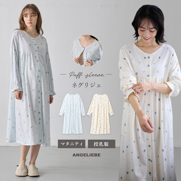 マタニティパジャマ ワンピース 妊婦 前開き 長袖 授乳 入院着 ルームウェア 部屋着 天竺 ネグリジェ 花柄 授乳服 春 秋 冬 エンジェリーベ