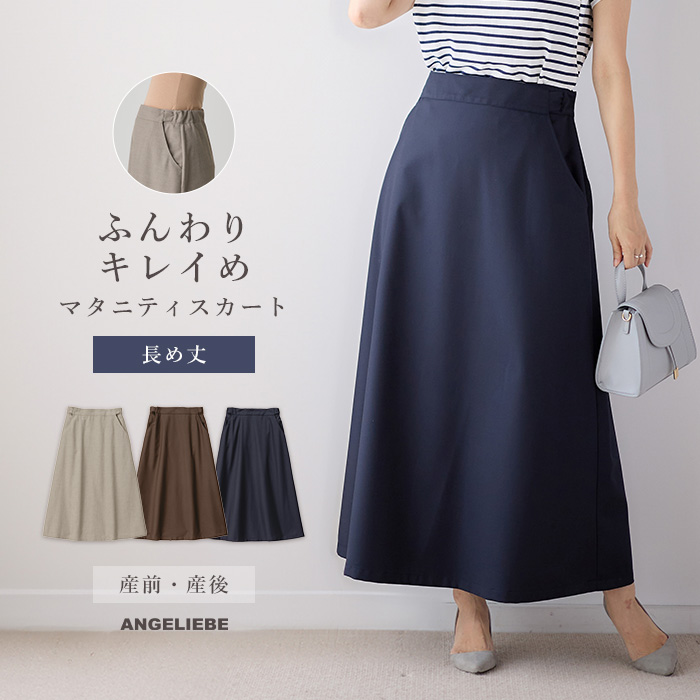 マタニティスカート セミフレアースカート マタニティー 産前 産後 授乳服 妊婦服 きれいめ 無地 シンプル ネイビー グレージュ ブラウン