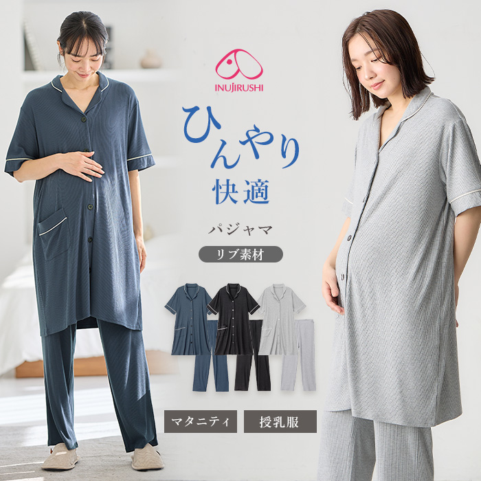 接触冷感リブ半袖パジャマ マタニティ・授乳パジャマ【出産後も長く使える】fairy(フェアリー)