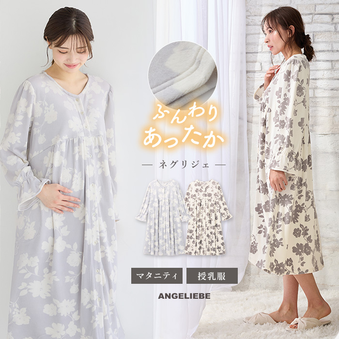 Rosemadame(ローズマダム)ストレッチベロア花柄ネグリジェ マタニティ・授乳パジャマ【産後まで長く使える】