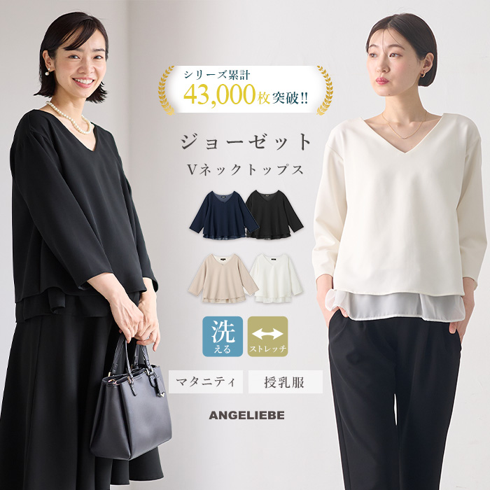マタニティ トップス 授乳口付 ストレッチジョーゼットVネックレイヤードトップス 授乳服 マタニティー フォーマル オフィス 通勤