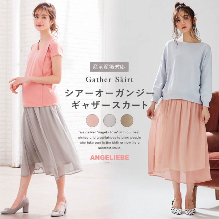 マタニティ スカート 産前産後対応 シアーオーガンジーギャザースカート 産前 産後 妊婦服 マタニティーウェア マタニティ maternity