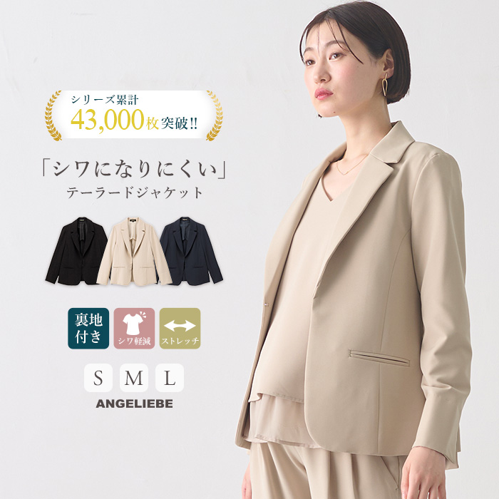 ANGELIEBE マタニティ 服 ジャケット 産前産後対応 ストレッチジョーゼットテーラードジャケット 羽織り フォーマル 通勤 オフィス 結婚式 きれいめ