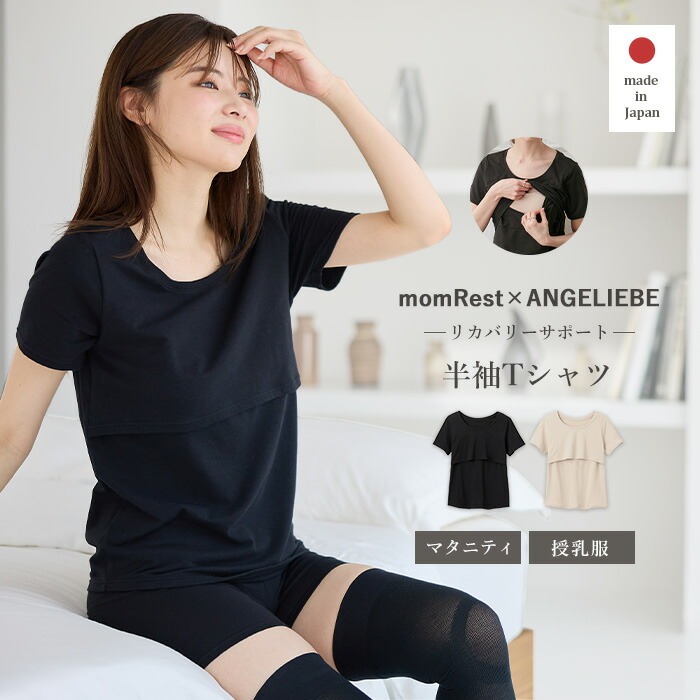 冷え対策 保温&リカバリーサポート momRest 半袖Tシャツ efe×ANGELIEBEコラボ 光電子 日本製
