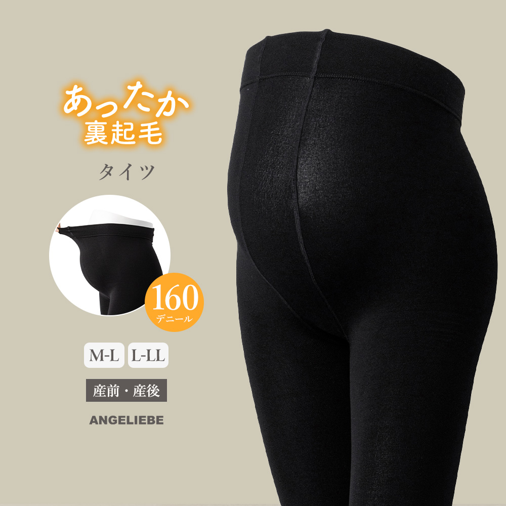 マタニティ タイツ 極暖 160デニール 妊婦 起毛 160D あったか 裏起毛 タイツ 臨月 らくちん ブラック 黒 産前 産後 エンジェリーベ