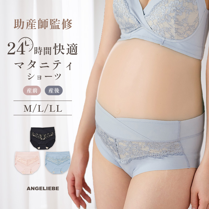 マタニティショーツ パンツ ローライズ 助産院監修 24時間快適 ショーツ 産前 産後 伸びる ストレスフリー 妊婦 V字フロント エンジェリーベ