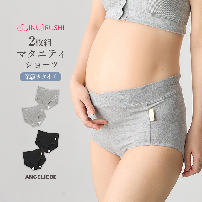 マタニティショーツ パンツ 犬印本舗 2枚組 深ばき らくちんショーツ レディース 産前 妊婦 インナー 下着 ブラック 黒 グレー