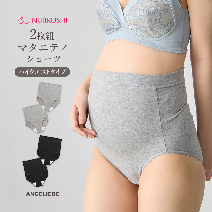 マタニティ ショーツ 可愛い 下着 ハイウエストショーツ 犬印本舗 2枚組 ウエスト らくらく 妊婦 インナー パンツ 無地 女性 深め 深履き
