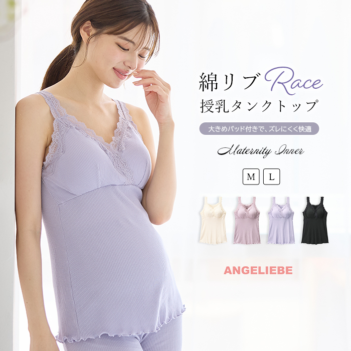 マタニティ 授乳タンクトップ キャミソール Rosemadame ローズマダム カップ付き 綿リブレース 肌着 妊婦 インナー 下着 シーズンレス ANGELIEBE エンジェリーベ