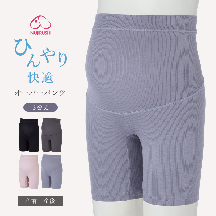 冷房の冷えに悩むママや、暑い時期でもショーツ1枚では不安というママにおすすめ。ソフトなひんやり感が気持ちいいオーバーパンツです。幅広いボトムに合わせやすい3分丈。ウエストはゴムを身生地でくるんでいるので肌当たりがやさしく、ストレスフリーな履き心地です。