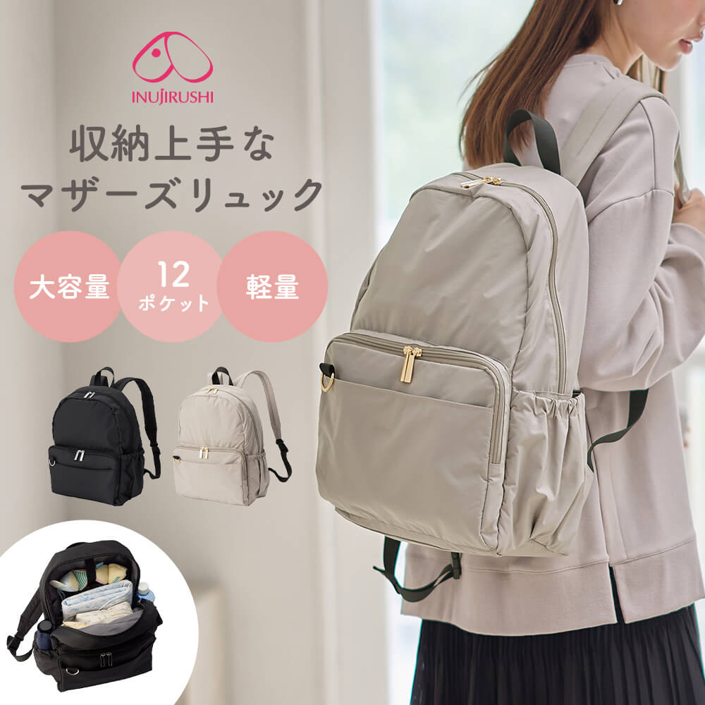 ●素材:ポリエステル●開閉:ファスナー●ポケット:前面=オープンポケット×4、側面=オープンポケット×2、背面=ファスナーポケット×2、内側=吊ファスナーポケット×1、吊オープンポケット×1、オープンポケット×4、ボトルホルダー×2 背面にキャリー用通りゴム付●重量:約460g●容量:約11L●企画デザイン:日本/生産国:中国