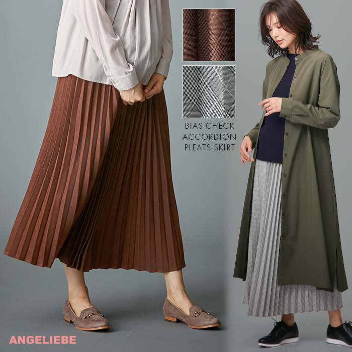 【産前産後対応】バイアスチェックアコーディオンプリーツスカート【出産後も長く使える】