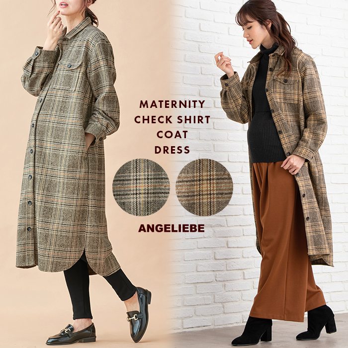 ママコート 授乳しやすい チェックシャツ コート ワンピース アウター 妊婦服 マタニティー ママ マタニティ 服 マタニティワンピース