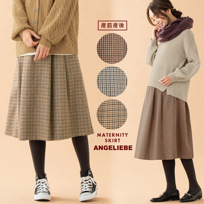 ほど良い厚みのチェック生地は、ウール混のふわっとした風合いで見た目もあたたか。トラッドなチェック柄で季節感のあるスタイリングが完成します。たっぷりギャザーと両サイドのタックフレアシルエットがお腹まわりをさり気なくカバー。長め丈なので大人っぽい着こなしが楽しめます。
