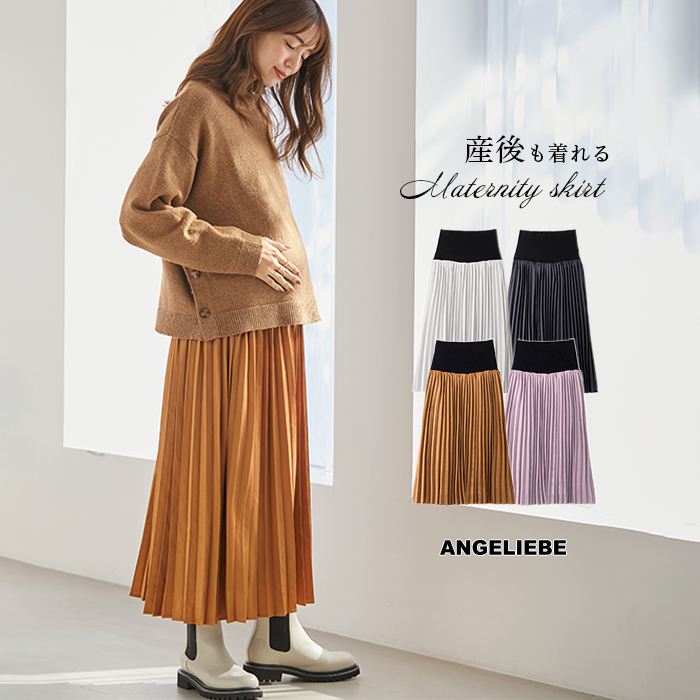マタニティ スカート 産前産後対応 サテンプリーツスカート 妊婦服 マタニティスカート プリーツ おしゃれ かわいい