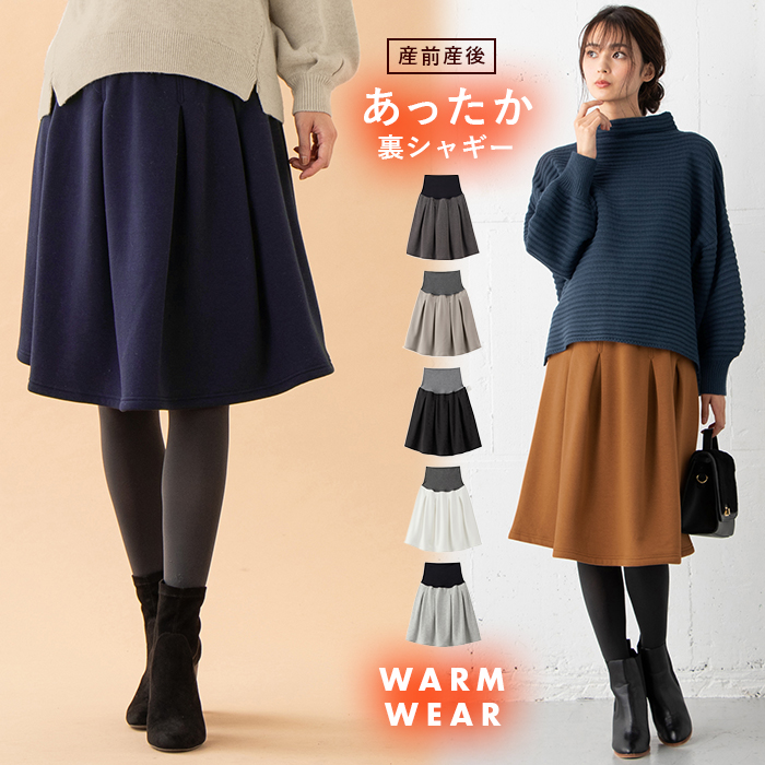 マタニティ 服 スカート 産前産後対応 極暖 裏シャギーあったかタックスカート 産前 産後 妊婦服 マタニティ 服 防寒 マタニティスカート