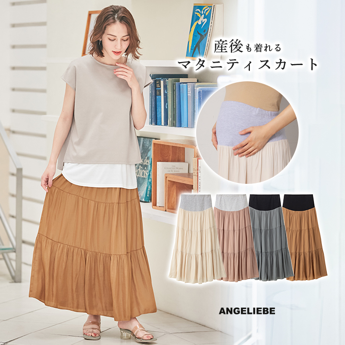 授乳服 マタニティ 服 スカート 産前産後対応 ヴィンテージ サテン ティアード ロングスカート 妊婦服 マタニティスカート 通勤 お宮参り