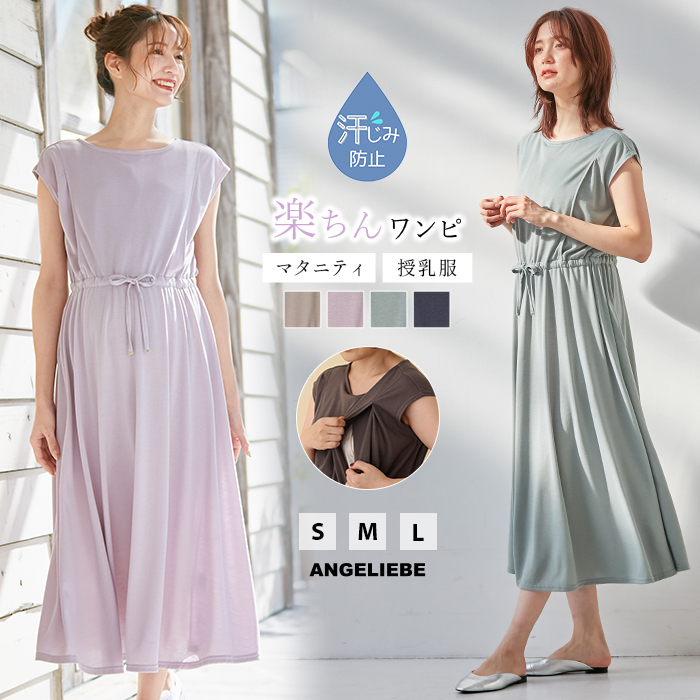 マタニティ ワンピース 授乳服 授乳口付 産前産後 汗染み防止 服 天竺 妊婦服 半袖 ロングワンピ 春 夏 エンジェリーベ