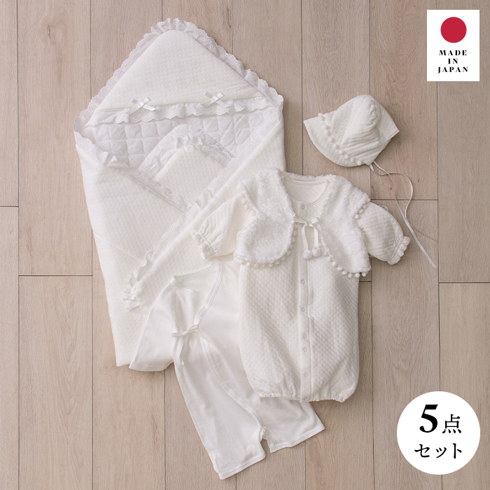 セレモニードレス 新生児 男の子 女の子 日本製 お宮参り ニットキルト 5点セット 赤ちゃん かわいい おしゃれ ベビー服 退院着 エンジェリーベ