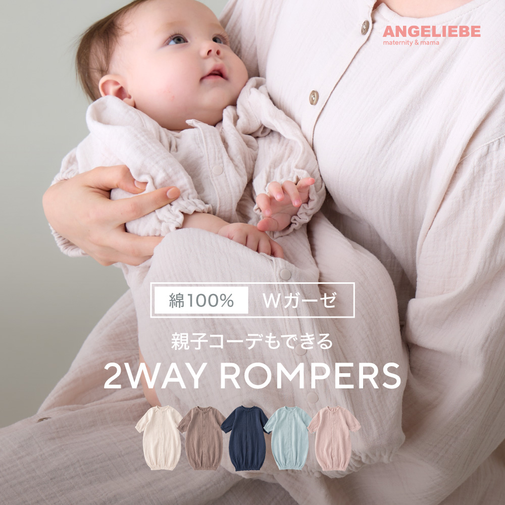 ベビー服 ロンパース 50 60 70 新生児 長袖 赤ちゃん 男の子 女の子 ツーウェイオール 綿100% 親子 リンクコーデ ダブルガーゼ エンジェリーベ