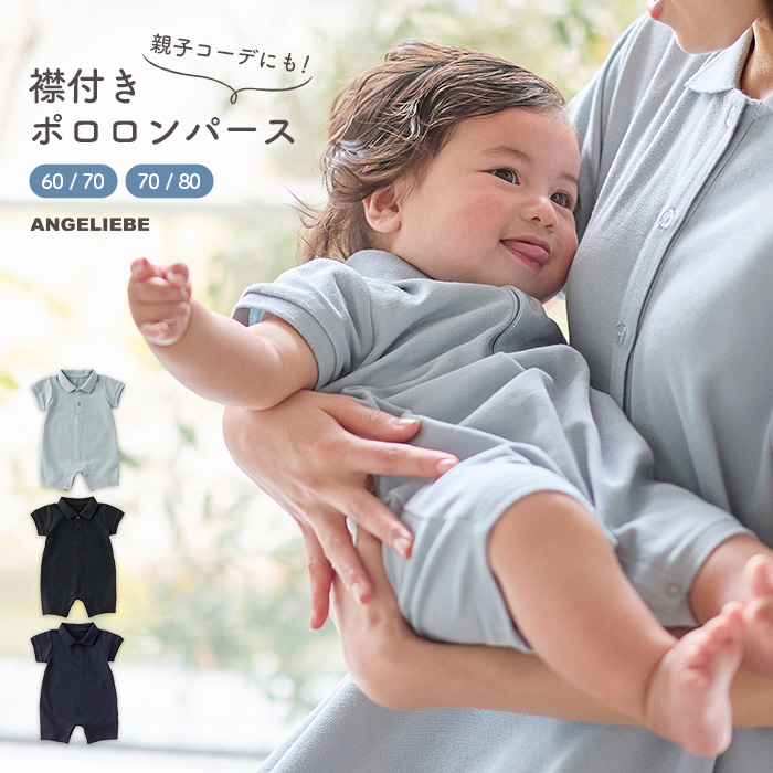 ベビー服 ロンパース 半袖 60 70 夏 春 カバーオール 親子コーデ 襟付き ポロ ロンパース 男の子 女の子 ペア 半袖 前開き リンクコーデ エンジェリーベ