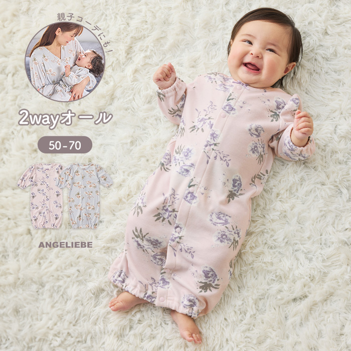 ツーウェイオール ANGELIEBE 赤ちゃん ベビー服 新生児肌着 ドレスオール カバーオール ロンパース 親子コーデ おむつ替え スムース 退院着 男の子 女の子
