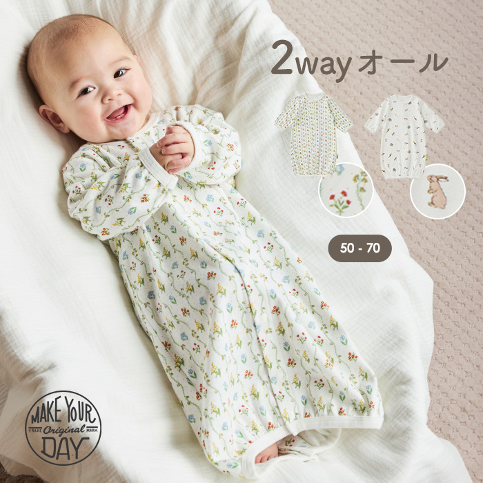 ロンパース ベビー服 長袖 50 60 70 男の子 女の子 2wayオール MAKE YOUR DAY 赤ちゃん 出産準備 花柄 動物柄 エンジェリーベ