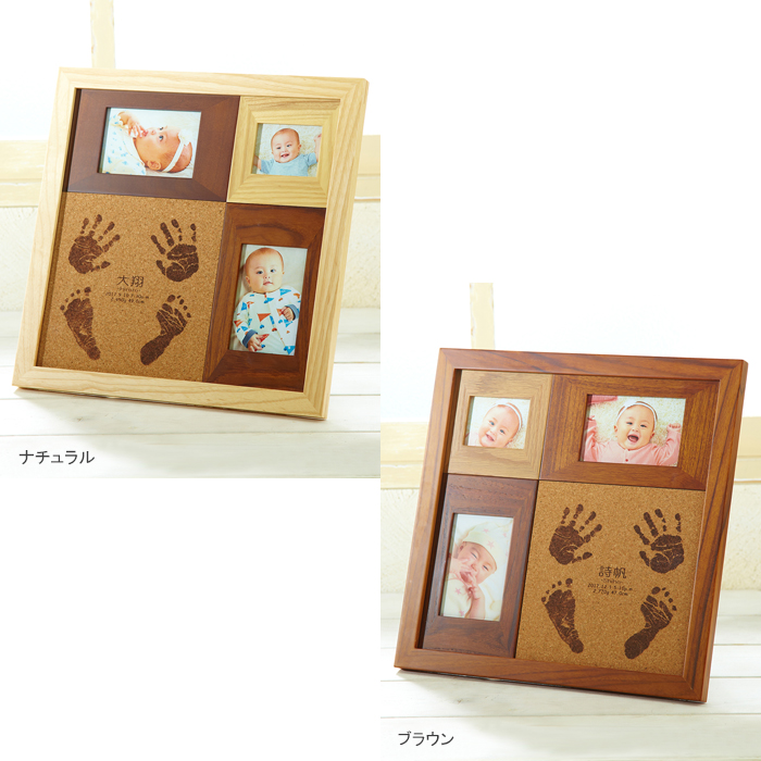 フォトフレーム 名入れ 出産祝い ちあき工房 コルクウッドスタンド L 誕生日 ベビーメモリアル プレゼント ギフト 写真立て 手形 足形 男の子 女の子 赤ちゃん