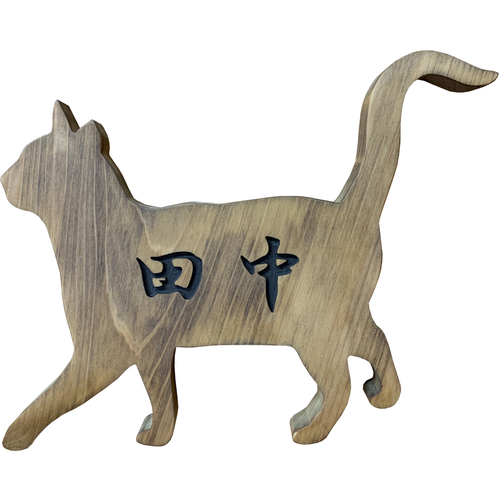 アメリカンショートヘアのシルエットにカットした木製ネームプレートです。