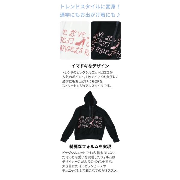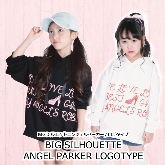 ビッグシルエット キッズ 子供 パーカー スポーツ 子供 服 子供服 可愛い 春 白 黒 パーカー クリスマス エンジェルパーカーロゴ柄 半額セール