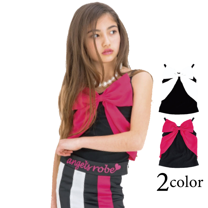 ダンス 衣装 キッズ キャミソール 白 ピンク リボン 子供服 こども ガールズ ホワイト 110 120 130 140 150 ビッグリボンキャミソール 2着までならネコポス可能