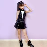 子供服 ダンス 衣装 ダンス衣装 子ども 女の子 キッズ ガールズ ジャズ チアガール チアガール衣装 シークインズミニ ブラック 黒 110cm 単品ならネコポス可能