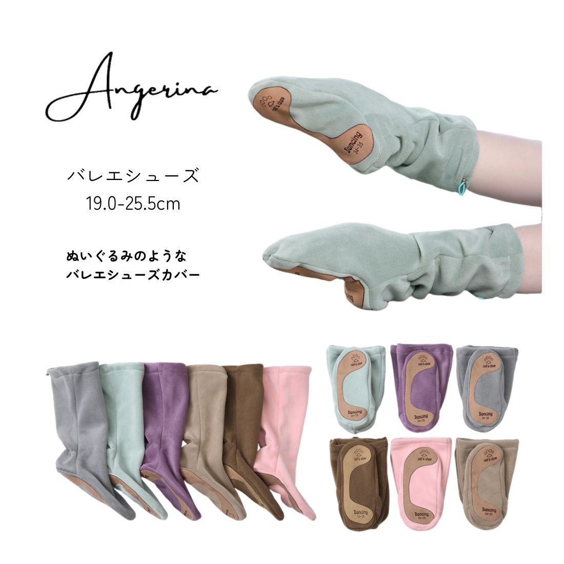 ふわもこ可愛い♪ バレエシューズカバー ウォームブーツ ウォームアップブーツ 寒い季節もレッスンの合間も、足元からほっとぬくもりを。ぬいぐるみのような見た目とふわふわフリース素材で、冷え知らずのあったか仕様。広めの履き口でシューズの上からもスッと履けて、脱ぐのもラクラク。滑り止め付き靴底&バックル+ゴムでしっかりフィット。くるっと小さくまとめられて持ち運びも便利♪ カラー:グレー・ミント・パープル・ブラウン・モカ・ピンク サイズ:28-41(19〜25.5cm)※シューズの上から履く設計。靴下のみ→1サイズ小さめ、素足→2サイズ小さめがおすすめ。 素材:メインフリース(靴底滑り止め付き)
