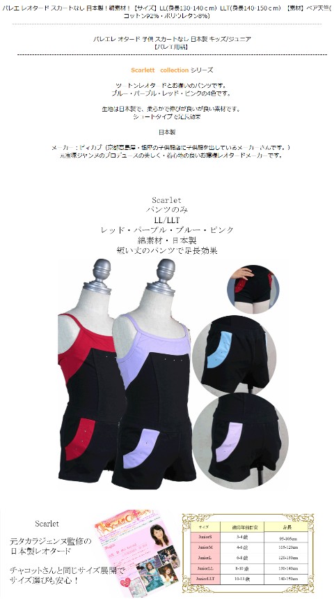 バレエ パンツ ショートパンツ 子供 ジュニア 日本製 キッズ 子供用バレエウォームアップウォームパンツ 【ツートンパンツ】LL/LLT/ピンク/レッド/ブルー/ライラックパンツのみ/綿素材【Scarlet】