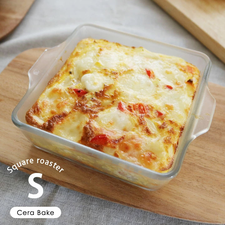 こちらの「スクエアロースターS」は、1人分のグラタンなどのアツアツ料理はもちろん、ホームパーティーのおつまみにアヒージョを作るのにも便利。シンプルなガラス製の器が、お料理の華やかさを引き立ててくれます。