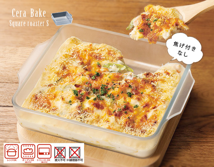 そんなお悩みを解決してくれるのが、セラミックコーティングをした耐熱ガラス皿、「セラベイク 焦げ付かないオーブン皿」です。