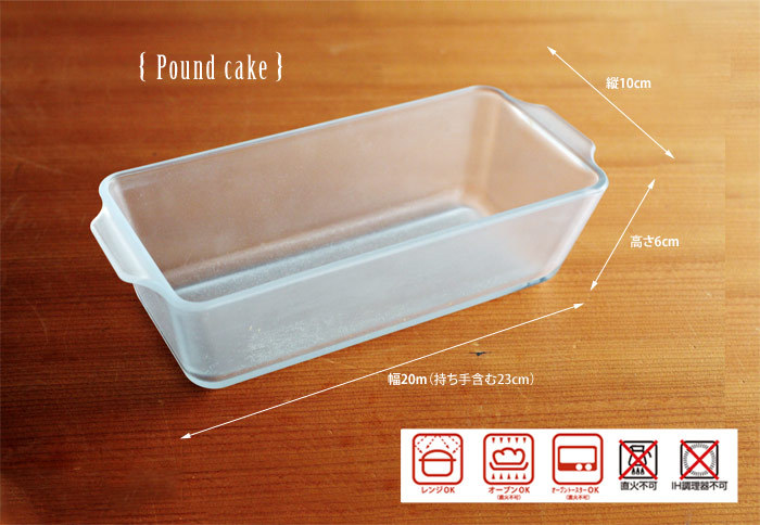 パウンドケーキ型のこちらは、ケーキだけでなく2〜3人分のグラタンなどのお料理や、ホームパーティーのキッシュ作りにもピッタリ。シンプルなガラス製の器が、お料理の華やかさを引き立ててくれます。