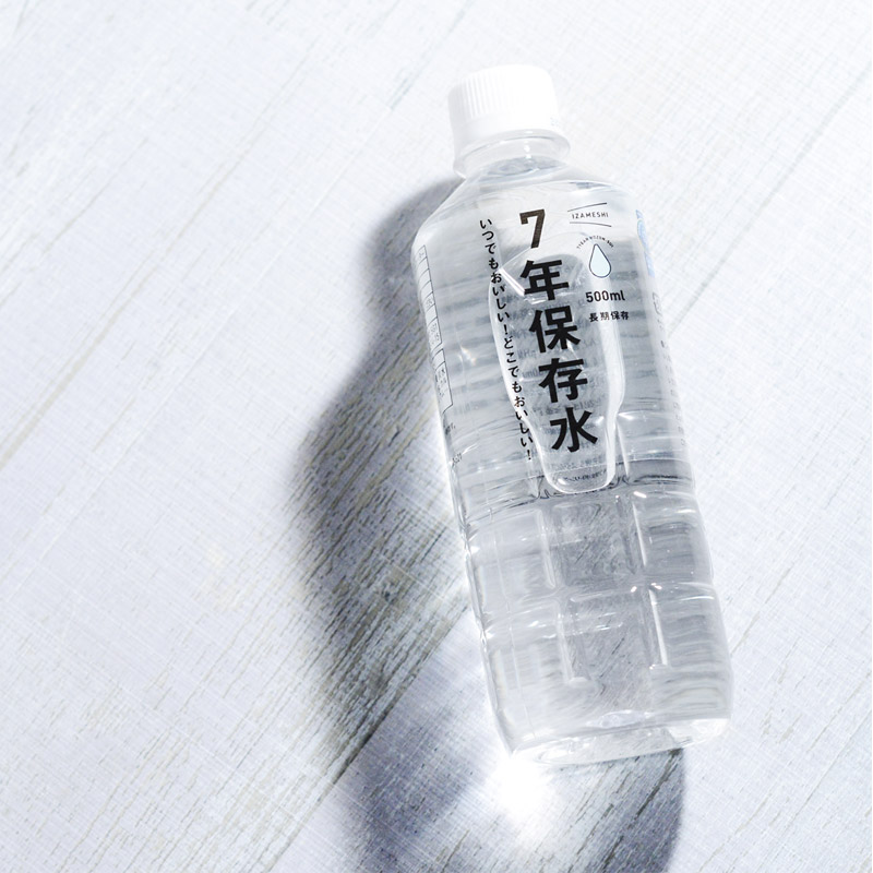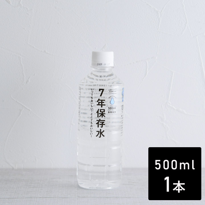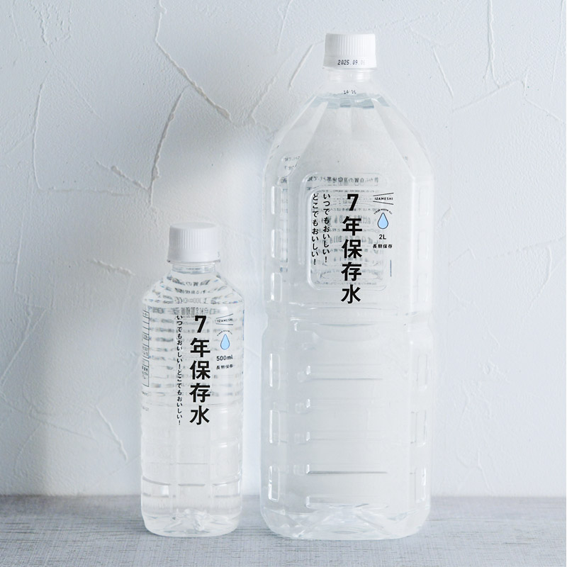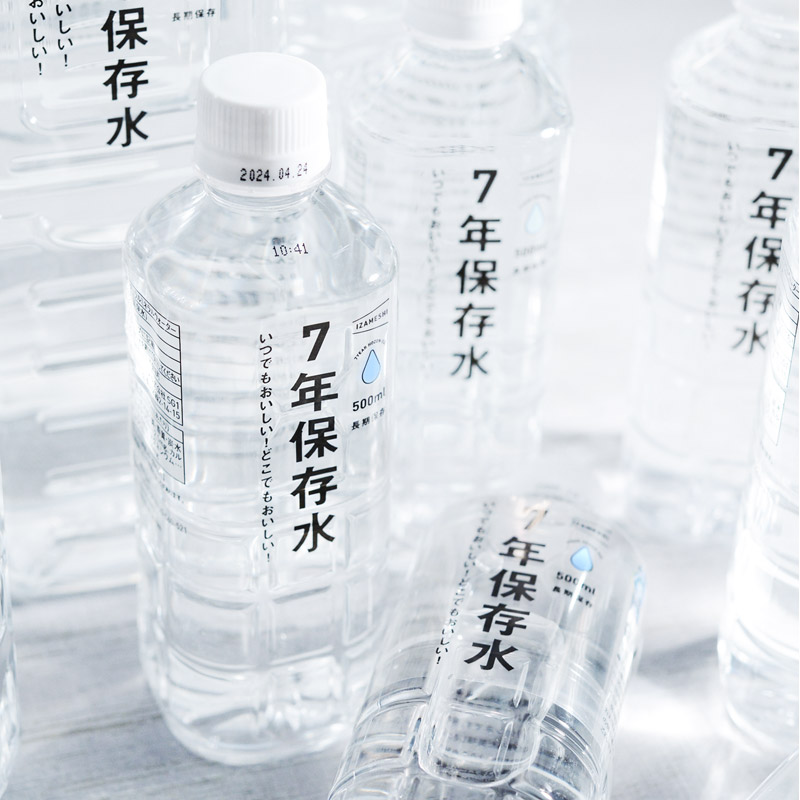 一般的な市販の水の賞味期限は、製造から1年から2年ほど。こちらは美味しさにもこだわった天然弱アルカリイオン水でありながら、長期保存が叶う「7年保存水 500ml」です。