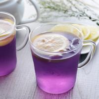 アントシアニンには、酸性やアルカリ性の成分を足すと、色が変化する特徴があります。青い緑茶もレモンを数滴垂らすことで、ちょっとミステリアスなパープルに変色!