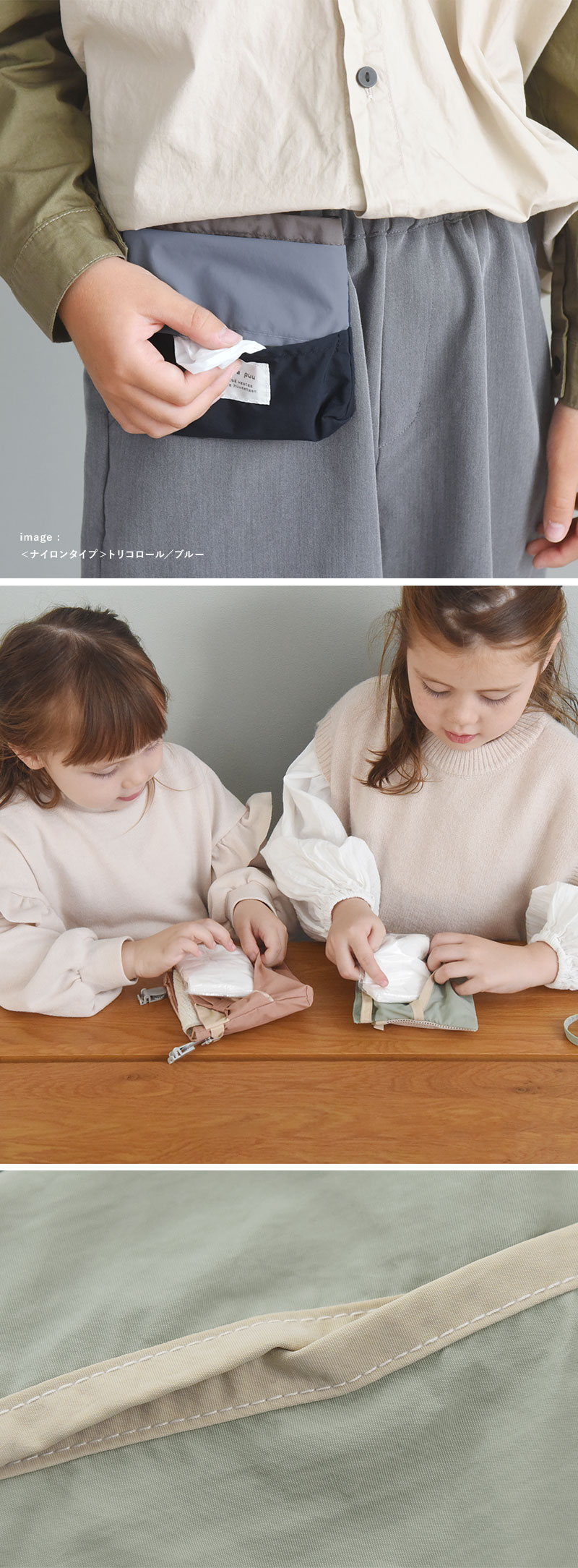 お洋服にポケットが付いていなかったり、小さかったりしてハンカチ・ティッシュが入らない、という時に便利な小学生の必需品「移動ポケット」。