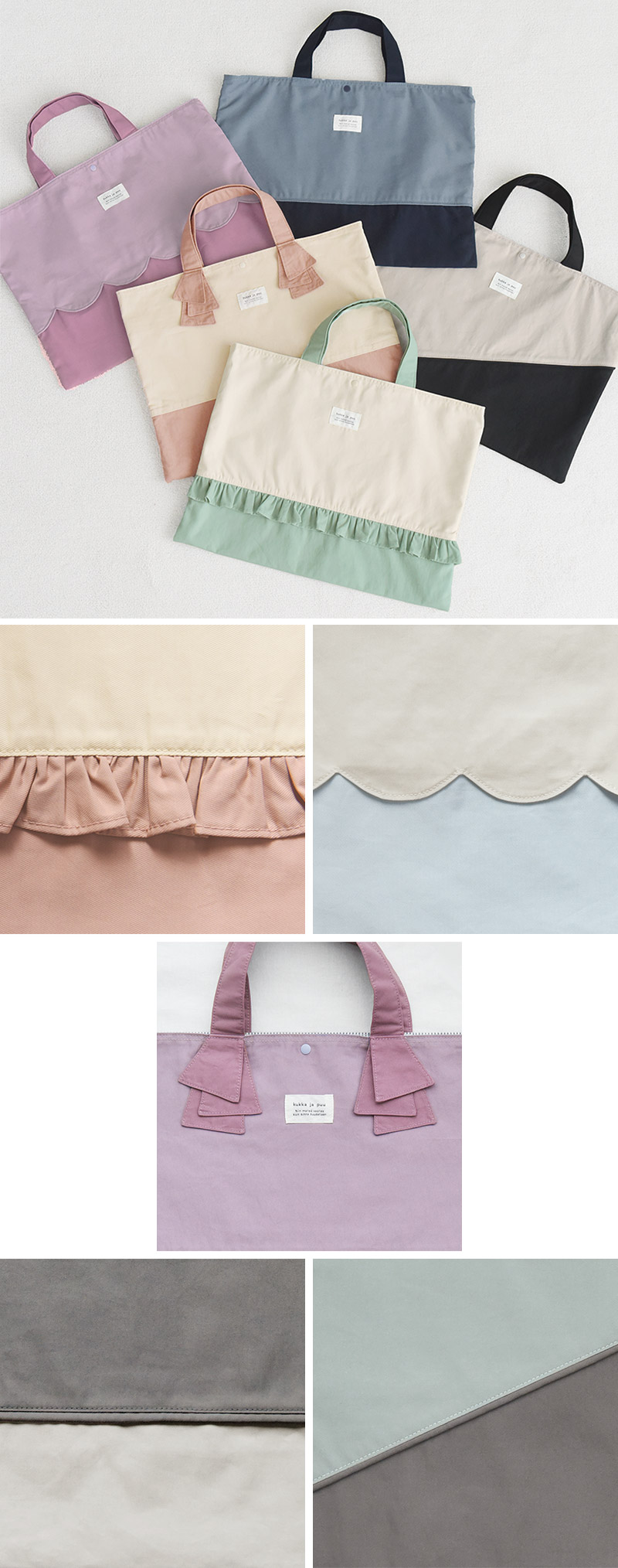 表地はニュアンスカラー、裏地はボーダー柄をあわせて北欧テイストの仕上がりに。フリル、スカラップ、すっきりシンプル無地など全10タイプを展開。