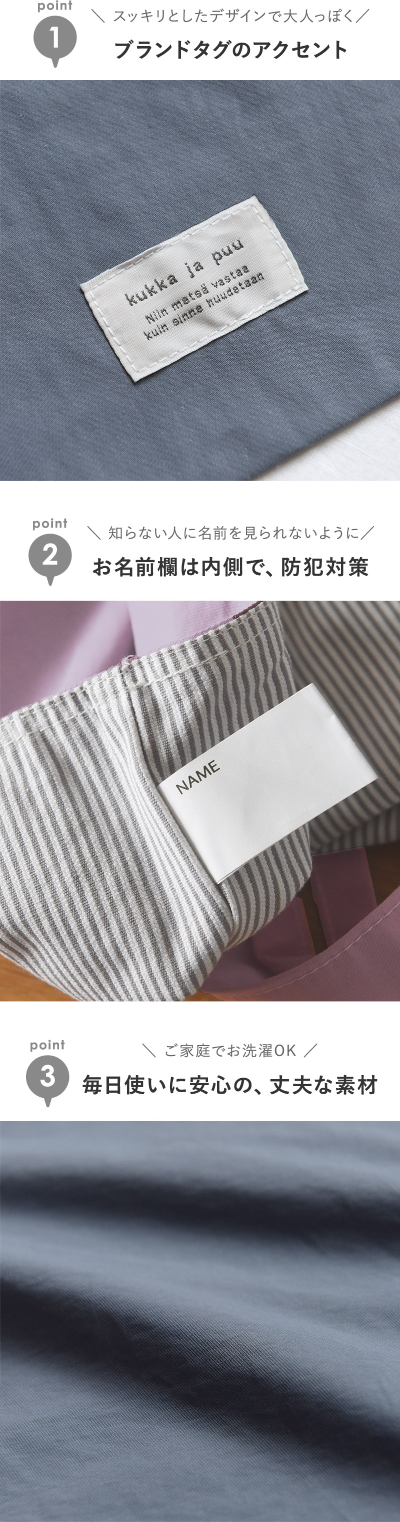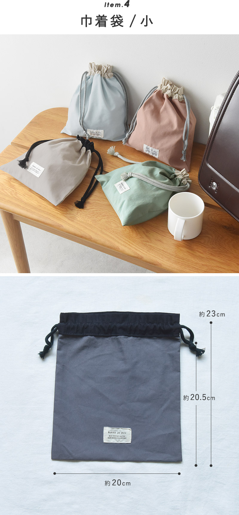 お子様のご入園・入学、新しい習い事のスタートに向けた準備に。kukka ja puu(クッカヤプー)の北欧ライクなシンプルカラーの「入園・入学4点セット」です。